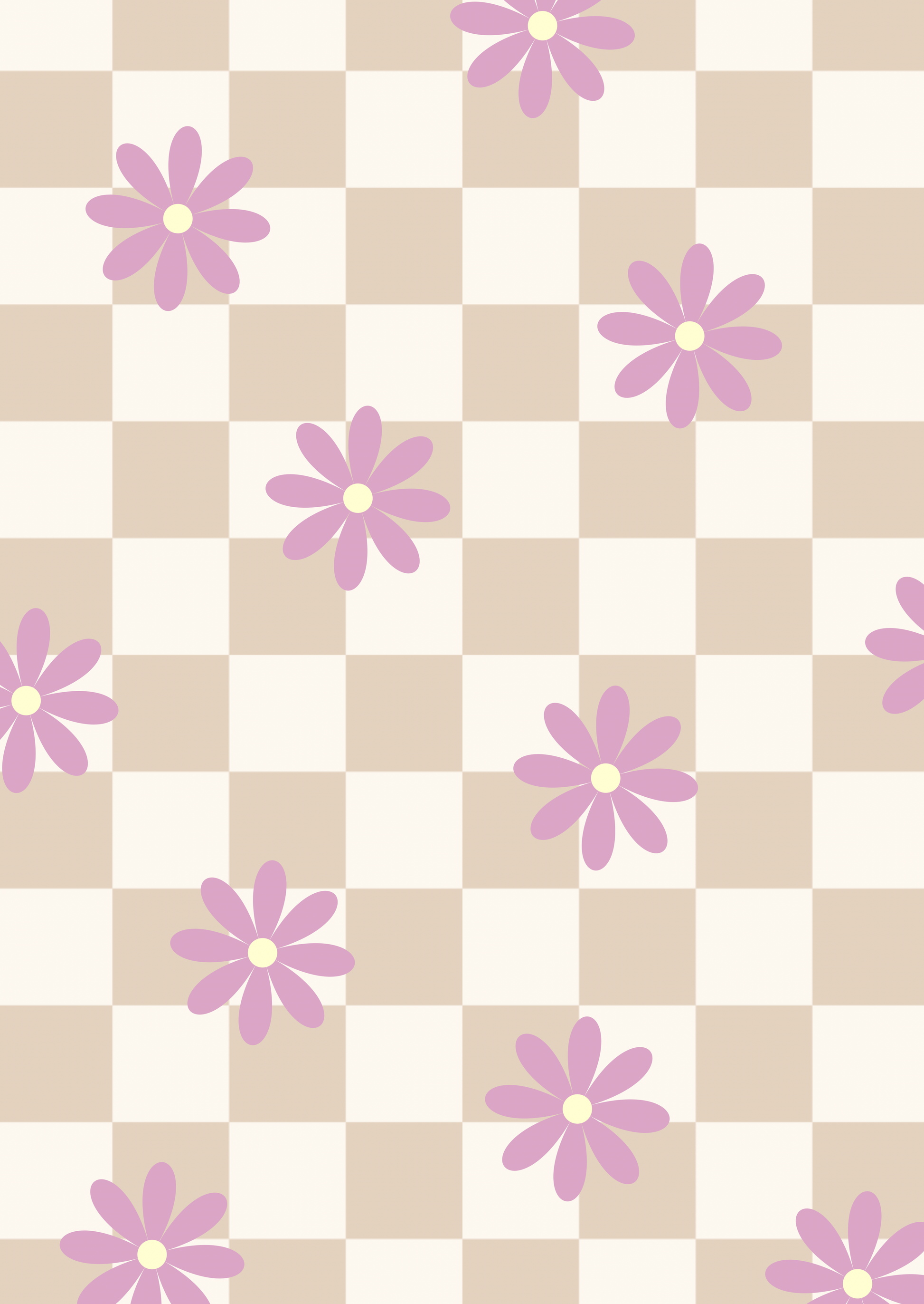 Kaart beige ruitjes met lila bloem